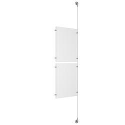(4) 11'' Width x 17'' Height Clear Acrylic Frame & (3) Aluminum Clear Anodized Adjustable Angle Signature Cable Systems with (8) Single-Sided Panel Grippers (4) Double-Sided Panel Grippers
