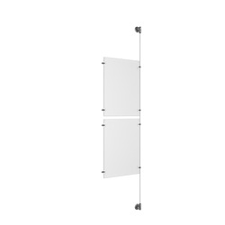 (4) 11'' Width x 17'' Height Clear Acrylic Frame & (3) Aluminum Clear Anodized Adjustable Angle Cable Systems with (8) Single-Sided Panel Grippers (4) Double-Sided Panel Grippers
