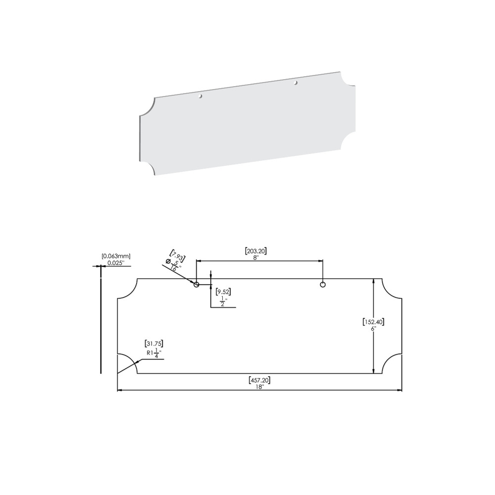 18'' W X 6'' H X .025'' T White Rectangle Sign Blanks with 1-1/4'' Inverted Corners and 2 Pre-Punched 5/16'' Holes