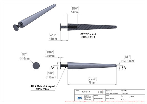 Thickness Material Accepted | Between (1/8'' and 3/8'') |
