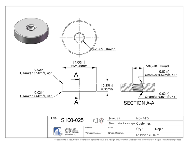 SKU: S100-025SS![5/16-18 Threaded Barrels Diameter: 1'', Length: 1/4'', Brushed Satin Finish Grade 304 [Required Material Hole Size: 3/8'' ]](/sites/default/files/products/S100-025SS/_resized_14b516ed7f66ce40099e9c4123ee2223_500.jpg)