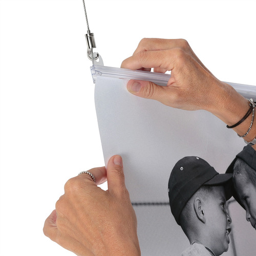 Our poster display kit is a reusable poster hanging system that holds your material safely and securely in place.