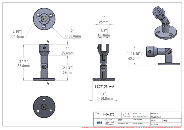 The Hinged Panel Gripper with Mounting Plate is designed to securely hold panels with a thickness of up to 3/8''. Featuring a 2'' diameter mounting plate and an extended length of 2-11/16'', this gripper provides a robust and stable mounting solution. The hinged design allows for flexible positioning, making it ideal for a variety of display and signage applications. Constructed from high-quality materials with a matte black anodized finish, this gripper ensures durability and a polished, professional look.