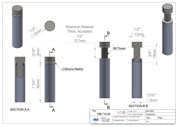 | Cap Height | 3/16'' |