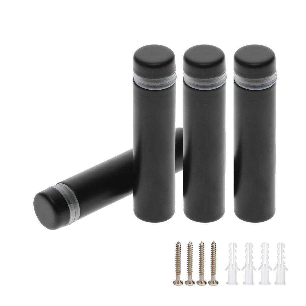 (Set of 4) 1/2'' Diameter X 1-3/4'' Barrel Length, Hollow Stainless Steel Matte Black Finish. Easy Fasten Standoff with (4) 2208Z Screws and (4) LANC1 Anchors for concrete or drywall (For Inside Use Only) [Required Material Hole Size: 3/8'']