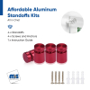 (Set of 4) Affordable Aluminum Standoffs, (4) 2208Z Screws, and (4) LANC1 Anchor for concrete or drywall; are perfect for all your indoor and outdoor applications. The sophisticated coatings that we carry will certainly provide your project a unique look that will definitely make it stand out like most standoffs systems from MBS Standoffs! Thanks to the easy setup process you could have an exhibit displayed anywhere you would certainly like quickly! If you look, listed below you will see data sheet summaries concerning this particular standoff. Cherry Red Dull Anodized Aluminum 1/2'' Diameter, 1/2'' Standoff.