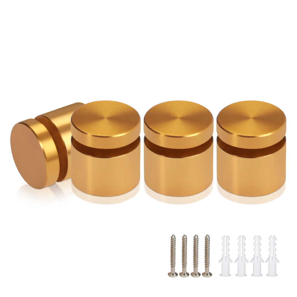 (Set of 4) 3/4'' Diameter X 1/2'' Barrel Length, Affordable Aluminum Standoffs, Gold Anodized Finish Standoff and (4) 2216Z Screws and (4) LANC1 Anchors for concrete/drywall (For Inside/Outside) [Required Material Hole Size: 7/16'']
