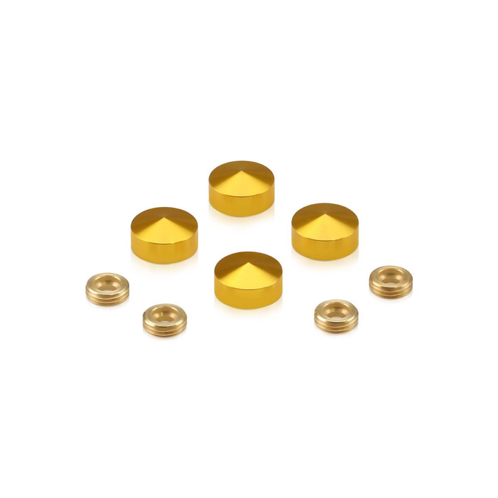 Set of 4 Conical Screw Cover, Diameter: 5/8'', Aluminum Gold Anodized Finish (Indoor or Outdoor Use)