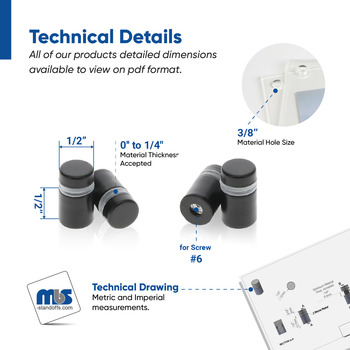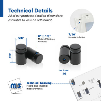 (Set of 4) 1/2'' Diameter X 1-3/4'' Barrel Length, Hollow Stainless Steel Matte Black Finish. Easy Fasten Standoff with (4) 2208Z...