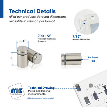 1/2'' Diameter X 3/4'' Barrel Length, Hollow Stainless Steel Brushed Finish. Easy Fasten Standoff (For Inside Use Only) [Required ...