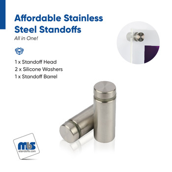1/2'' Diameter X 1/2'' Barrel Length, Hollow Stainless Steel Brushed Finish. Easy Fasten Standoff (For Inside Use Only) [Required ...